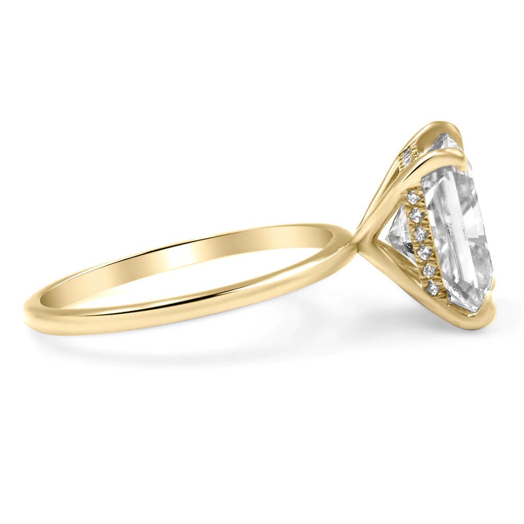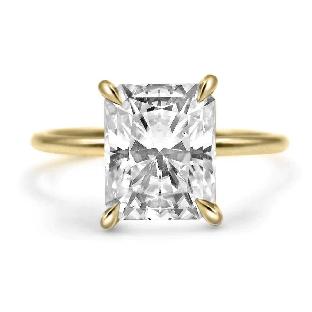 This beautiful engagement ring is the one and only classic Radiant with a hidden halo. You can't go wrong with this delicate design. It will always be timeless. Brides love this ring because you can mix and match any wedding band with it. The attention is all on her, that one of a kind center stone in your ring. Perfect for our radiant shape lovers!
