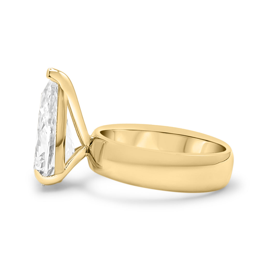 This beautiful 14K solitaire engagement ring features a 5mm half round band. Brides love this engagement ring because it is such a beautiful design. Perfect for a chunky look.