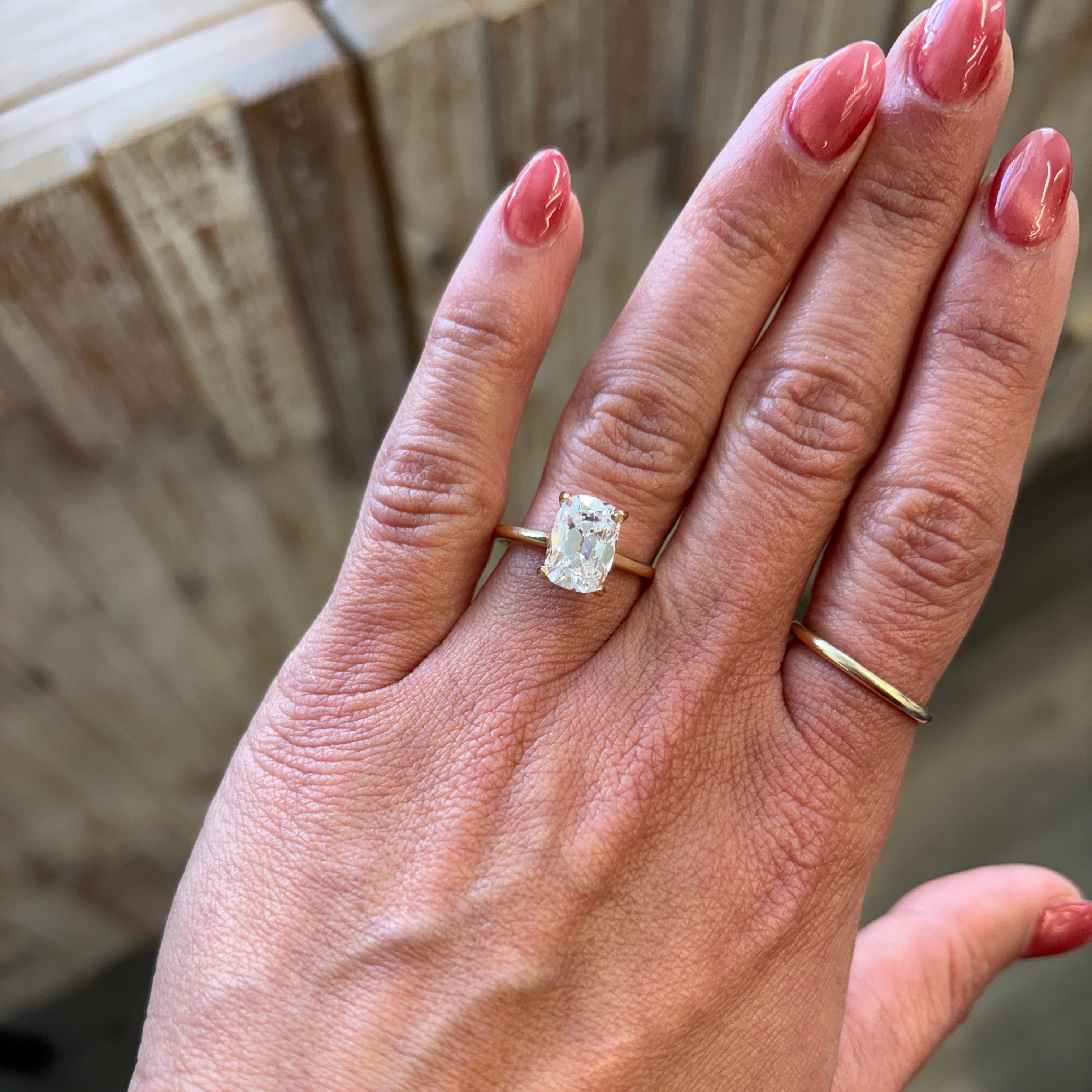 Center stone shape: Elongated Cushion Old Mine (OMC)
